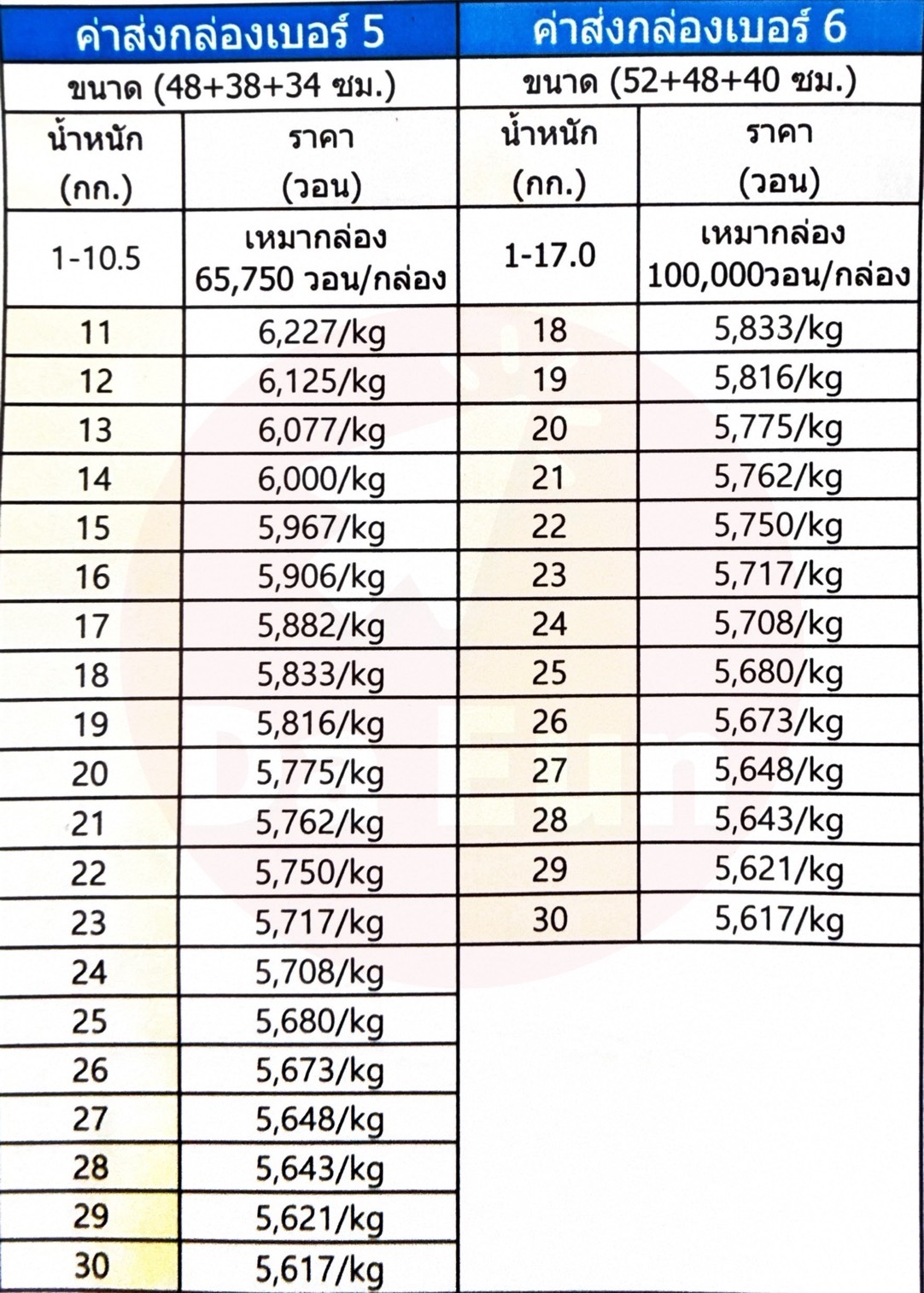 • หากส่งสินค้าชนิดเดียวกันจำนวนมาก