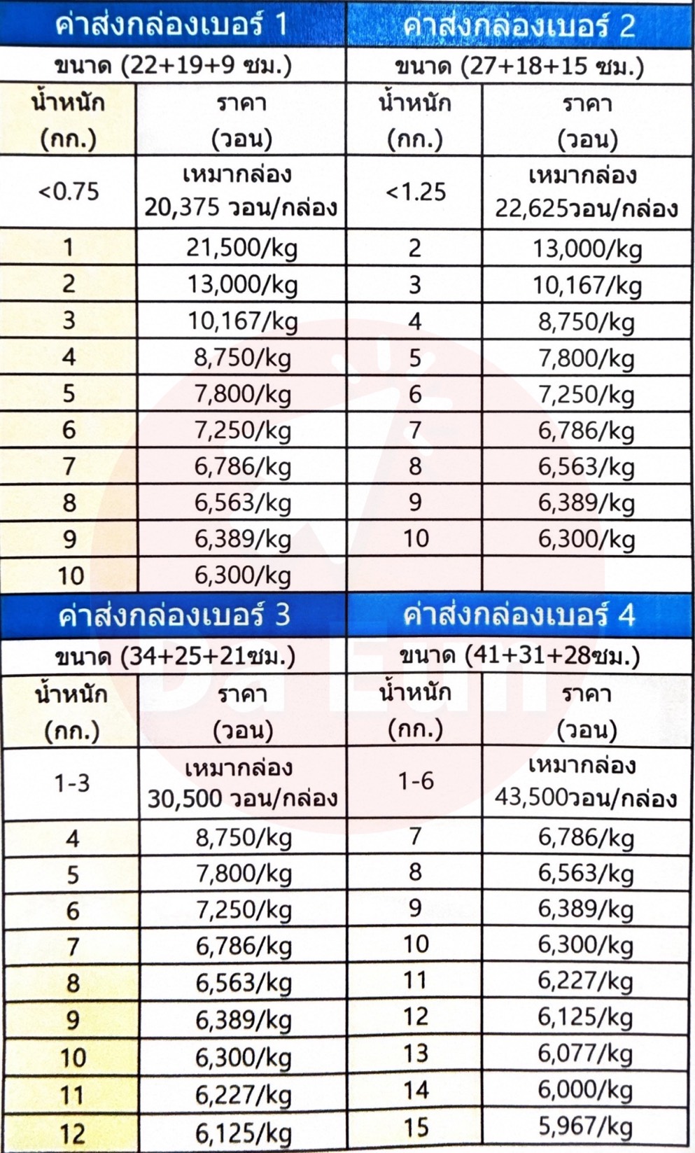 • ดาอึนให้บริการจัดส่งพัสดุด่วน EMS ทางเครื่องบินเท่านั้น